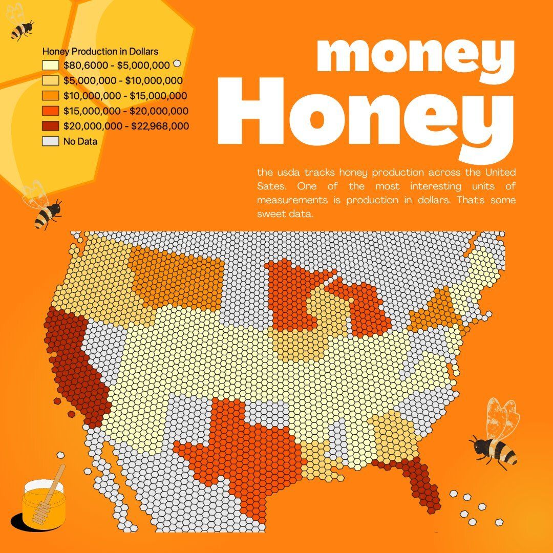 Honey Production in Dollars. Data via USDA