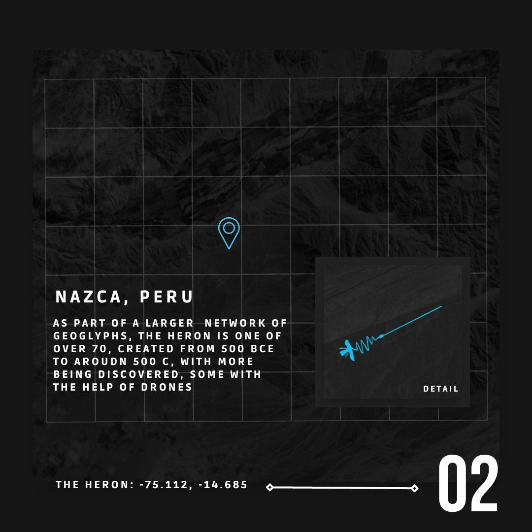 the heron, part of the Nazca Line Geoglyphs found in the Nazca Desert