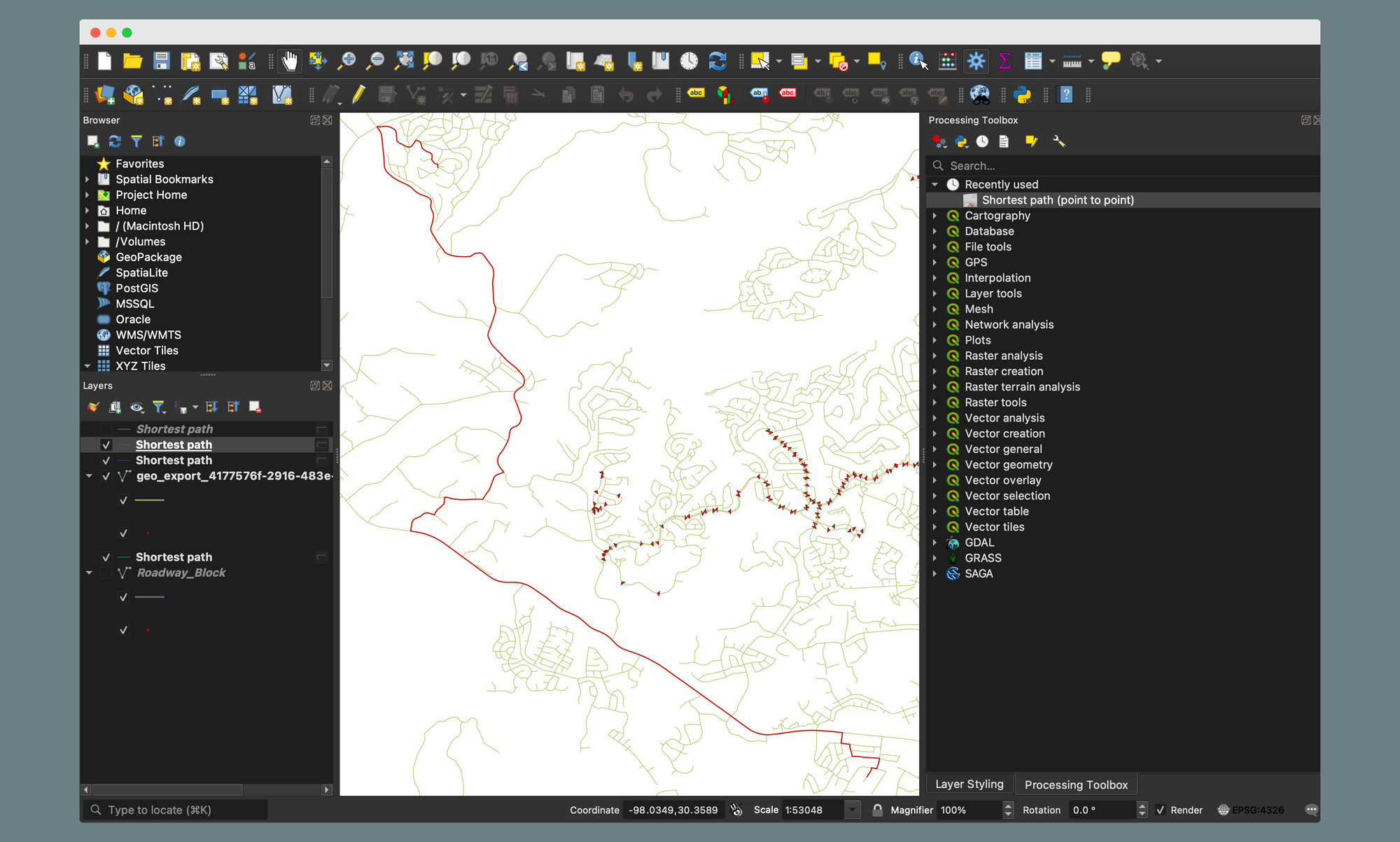 This is a question that continued to come to mind as I was working though this tutorial. If a service like Google Maps exists, why would I ever need to run a desktop network analysis in QGIS.